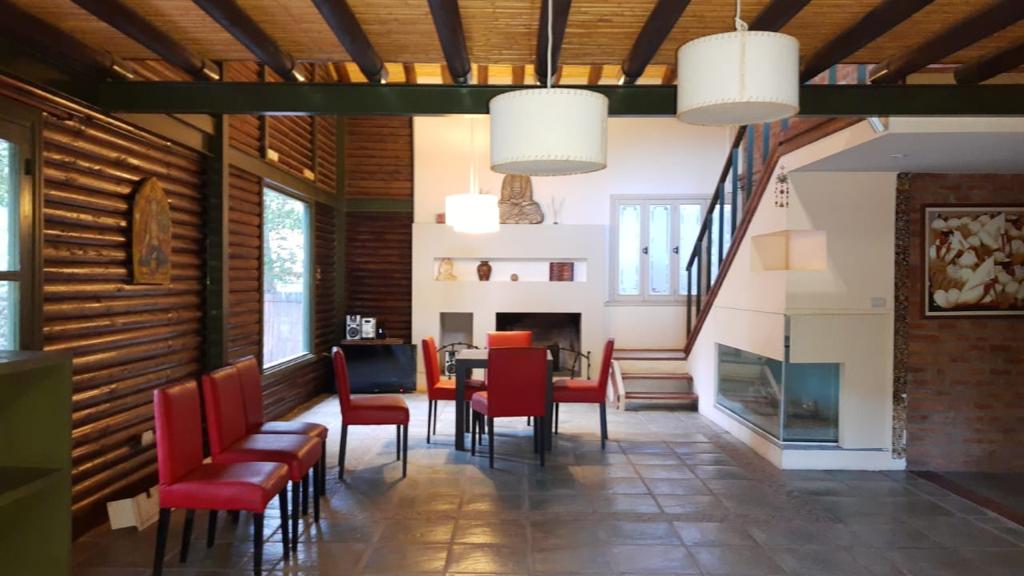 La casa está equipada con aire acondicionado, calefacción, chimenea, TV, Wi Fi, heladera, cocina con horno, alarma y luz de emergencia.