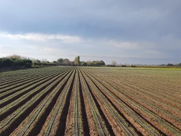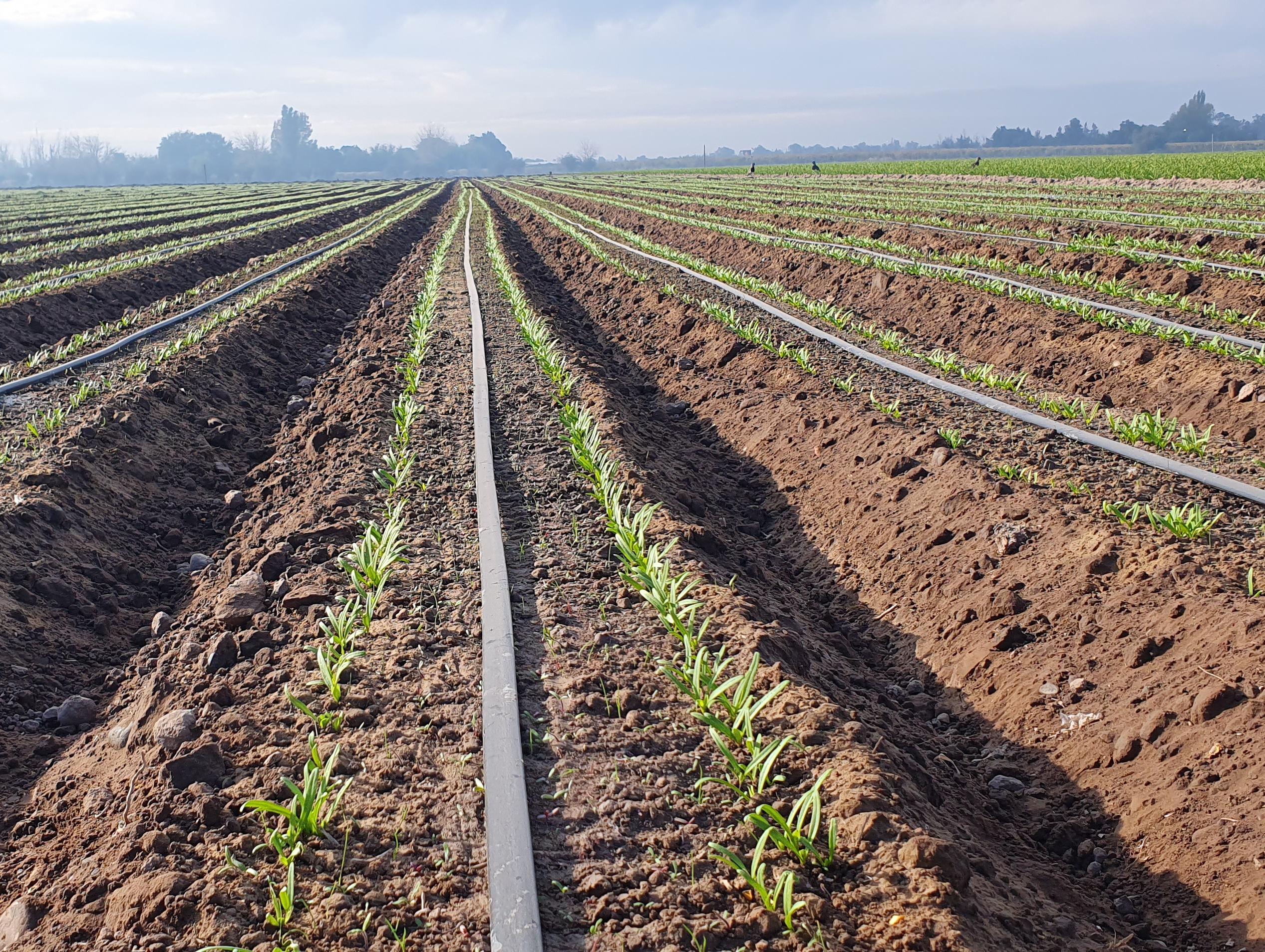 Se ven lotes muy prolijos, con riego por goteo, todo para buscar alta calidad final de los vegetales de campo. Los rindes están en las 25 a 27 toneladas por hectárea en San Juan.