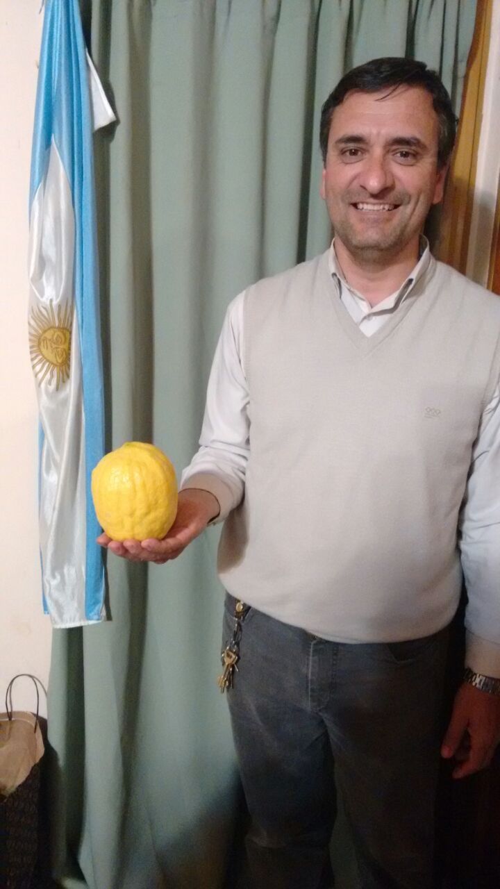 En unas huertas familiares de Villa Tacú, departamento Zonda, la familia de Manuel Ortega esta acostumbrada a cosechar limones todos los años. Pero esta temporada, los sorprendió el tamaño de los mismos. Luego de contar con algunas frutas de más de medio kilo de peso, esta campaña cosecharon un limón (foto) ¡de 832 gramos!