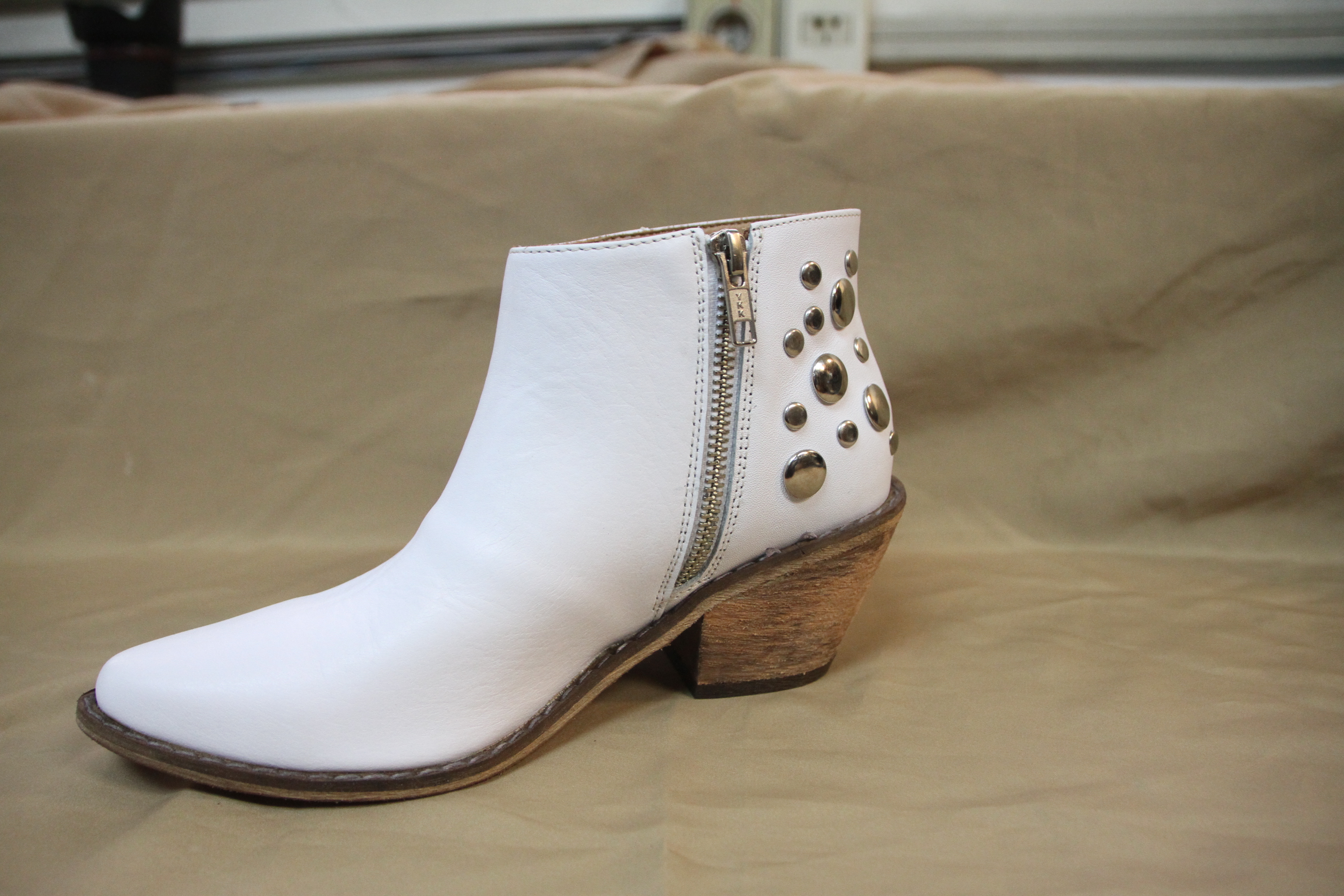 Botita blanca de cuero con tachas en la talonera ($2790 Muy Boutique)