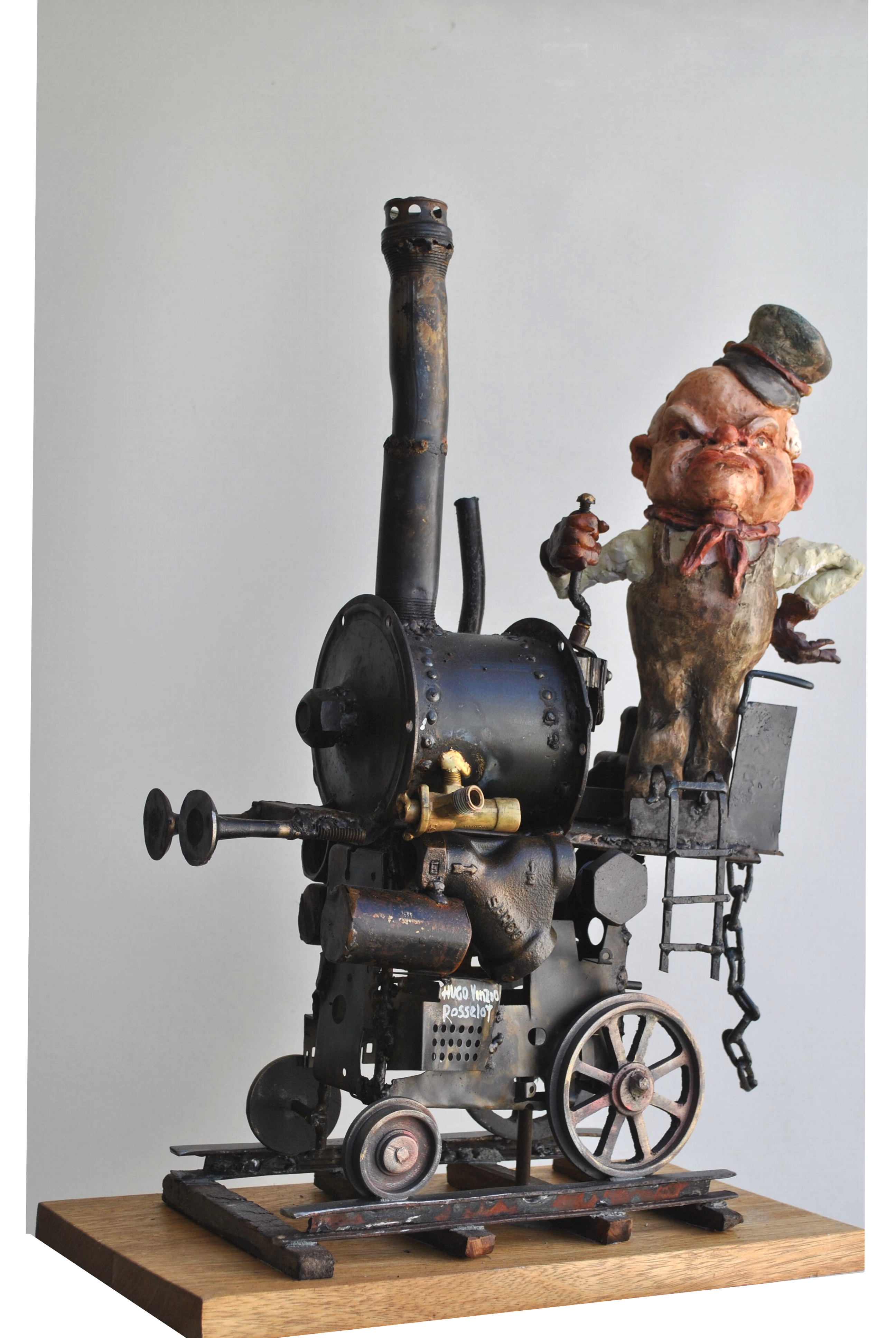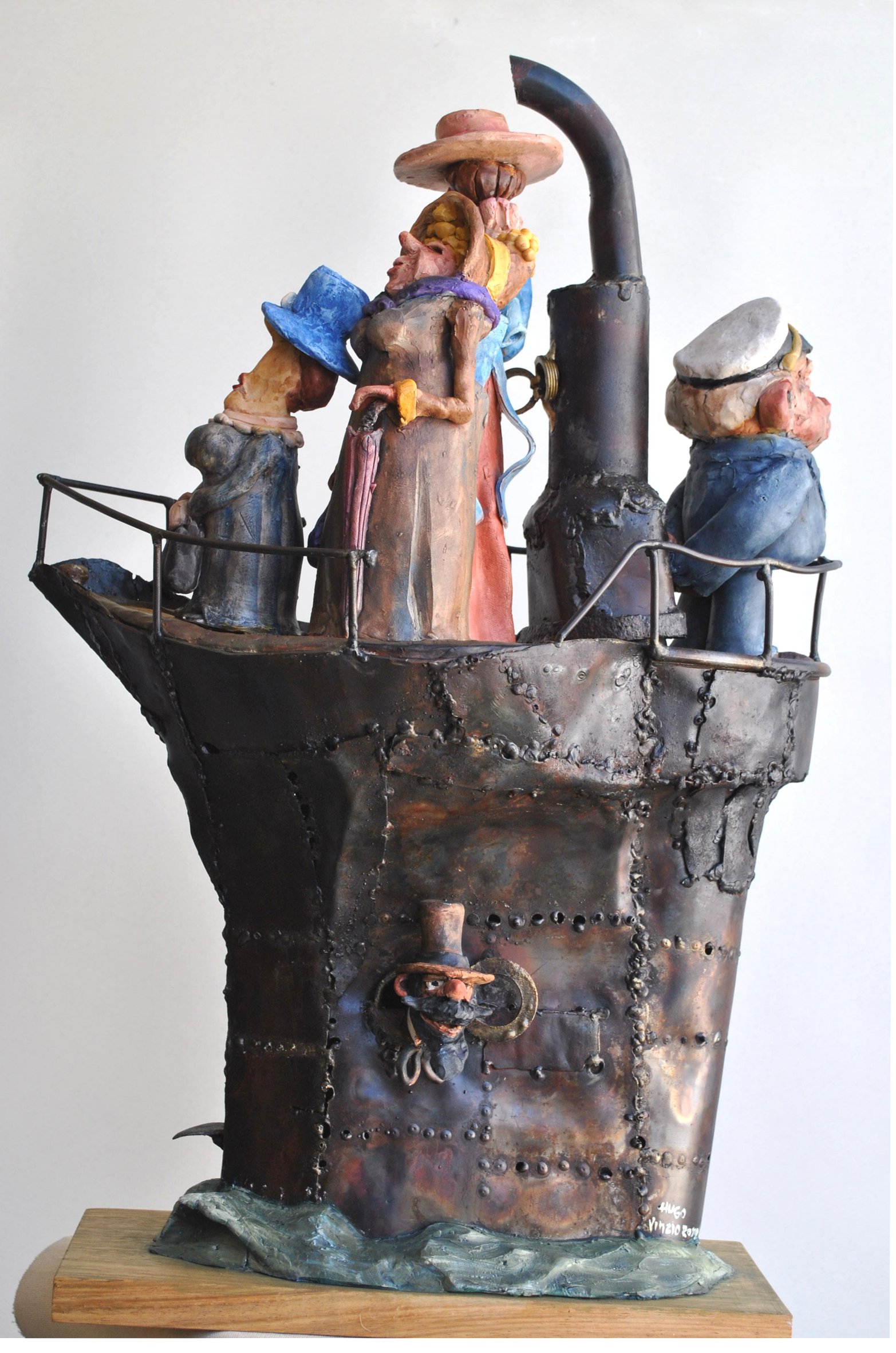 Ya en mi taller, volví a trabajar con mis manos pero abordé un tema complicado que al día de hoy en algunos ámbitos se me cuestiona, que es el "humor". Entonces, ¿qué es para usted el humor en el arte? El humor en el arte lo pienso desde hace mucho tiempo, creo que esta frase es la que se asemeja a mi pensamiento, del famoso dramaturgo francés Boris Vian: "El humor es la galantería de la desesperación". Esto me resuelve absolutamente el problema; porque en definitiva el humor no es otra cosa que un espíritu desesperado, frente a un mundo hostil, duro, crítico, indiferente por momentos y muy violento. ¿Desde dónde respondo a eso? Y, diría desde una concepción romántica de la vida, paro la acción y trato de hacer sublime el dolor, hago humor porque estoy desesperado, porque es la galantería de esta desesperación que tengo. Es lo que estoy haciendo ahora, a esta altura de mi vida con más de 40 años en esto.