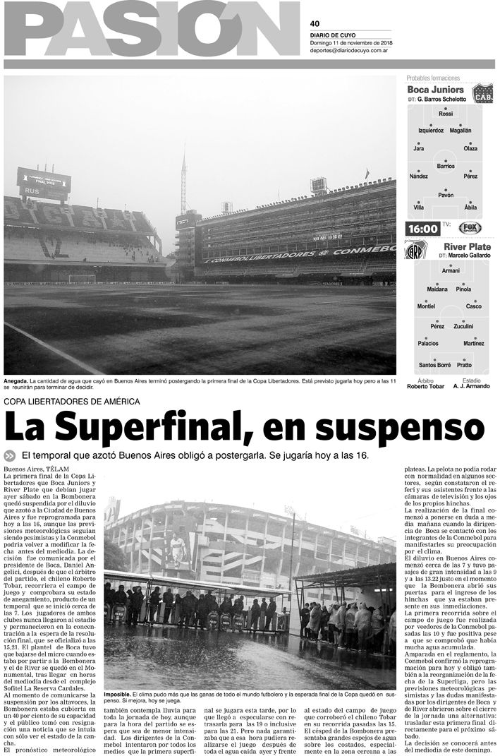 Tapa Pasión 11 de Noviembre de 2018