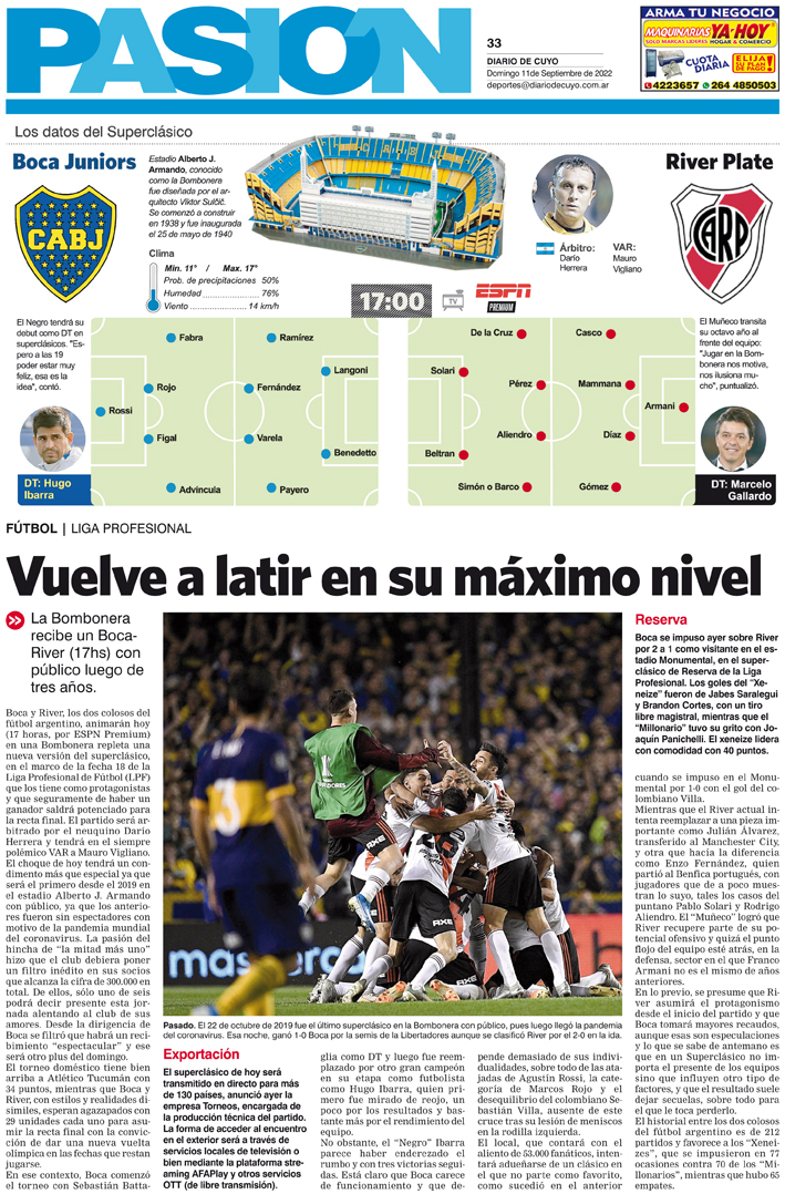 Diario de Cuyo | HOME | Pasión Deportiva Tapa Pasión 11 de Septiembre de 2022 Por Redacción Diario de Cuyo 10/09/2022 · 0:00 Escuchar la noticia Escuchar la noticia Your browser doesn’t support HTML5 audio Ver los comentarios ›
