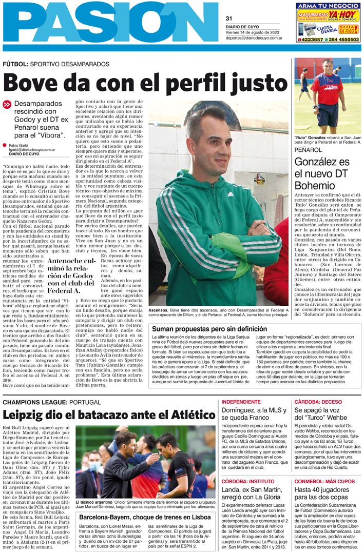 Tapa Pasión 14 de Agosto de 2020