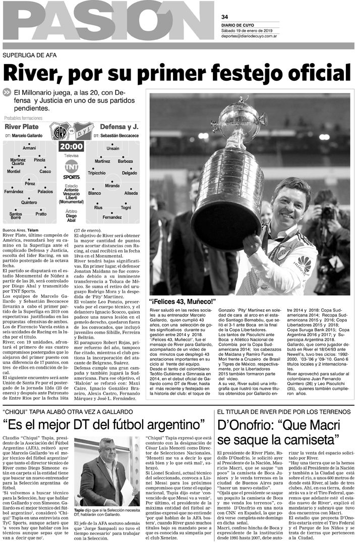 Tapa Pasión 19 de Enero de 2019