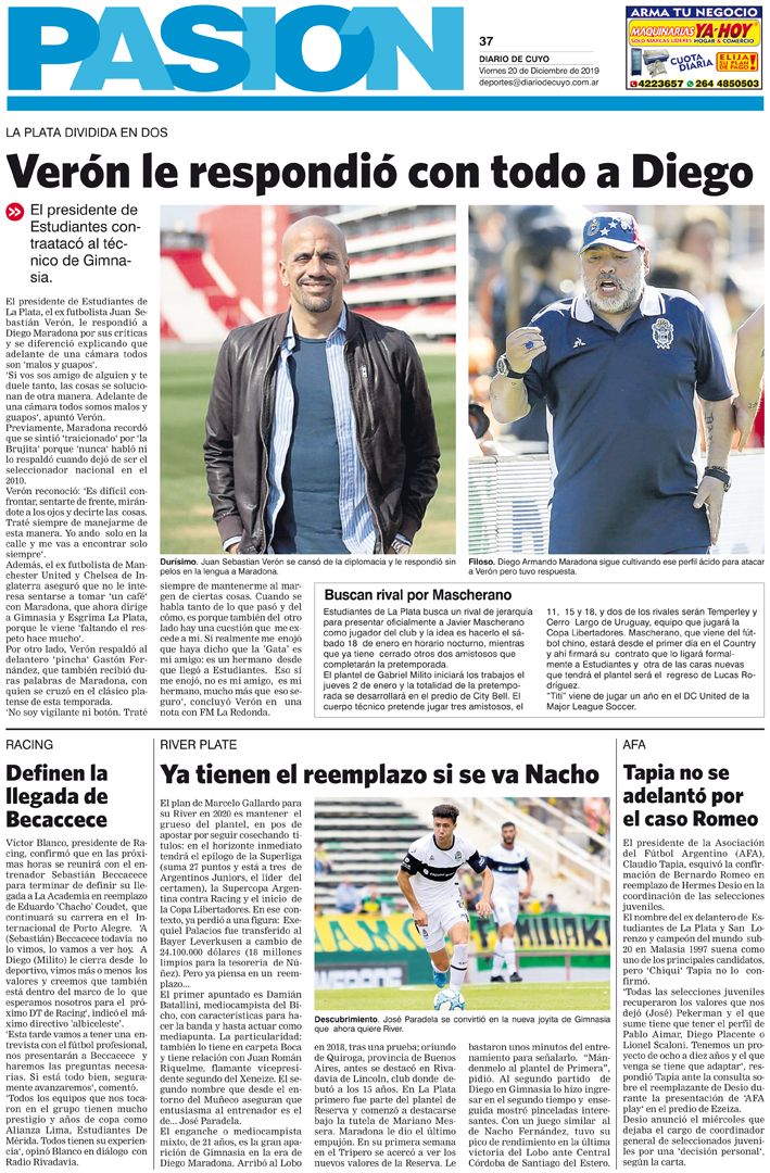 Tapa Pasión 20 de Diciembre 2019