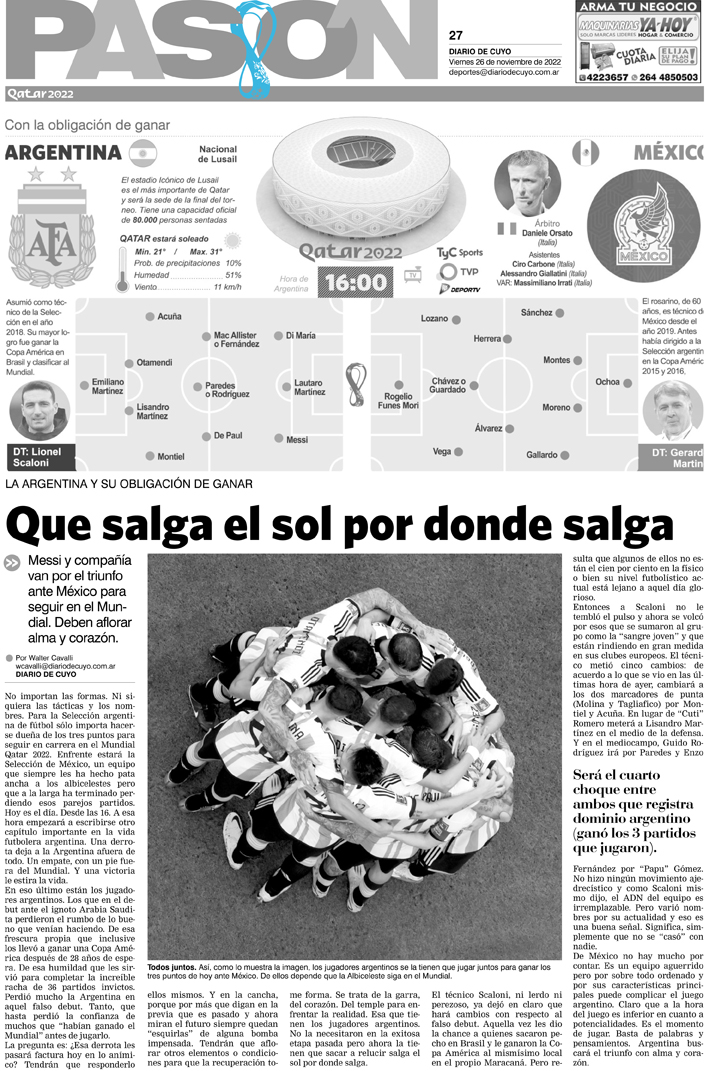Tapa Pasión 26 de Noviembre del 2022