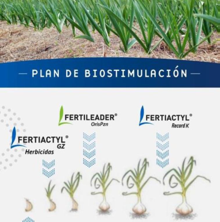 Tal como afirma nuestro entrevistado "en nuestra empresa, se hacen planes a medida para cada cultivo, cada productor y cada finca. Por ejemplo, para un caso de ajo chino tratado, utilizamos TopPhos 7-24 o Basiduo Kent como granulado de base (200 a 300 kg) asegurando un buen inicio del cultivo; una aplicación de 2 a 3 litros por hectárea de GZ con la tercera hoja verdadera (mejorando sistema radicular y tasa de crecimiento); una aplicación antes del invierno de Oris (bioestimulante con Zinc para favorecer el alargamiento del cuello), y 40 días antes de cosecha una aplicación de Record (bioestimulante con alto contenido de potasio para terminar el cultivo y aumentar los rindes)."