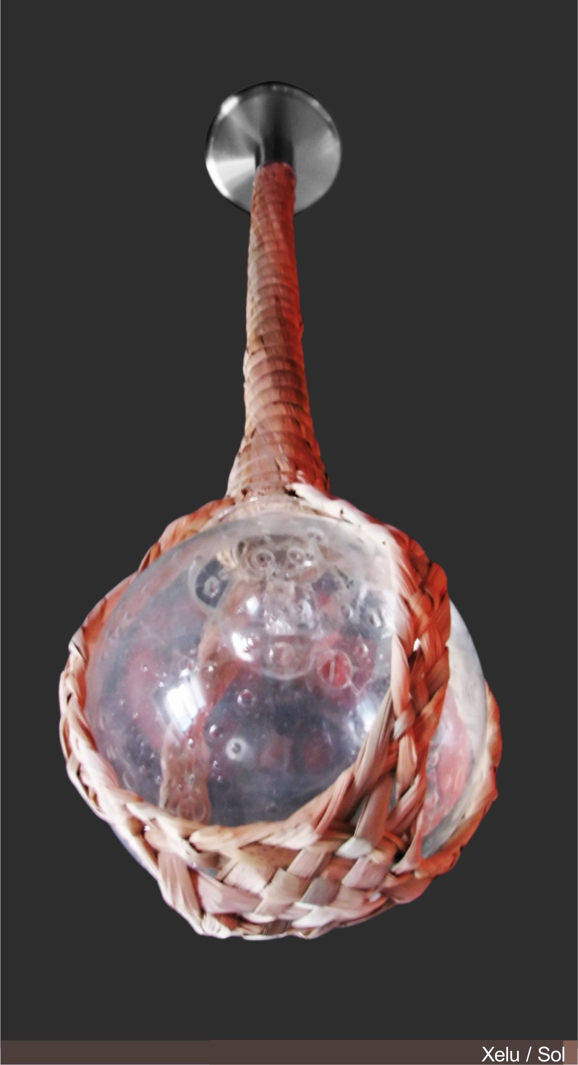 Federico Heredia no sólo es el autor del mundo y el portal en Santa Lucía, entre otros objetos y mobiliario que ha ido cosechando en su profesión. Orgulloso puede mostrar unas interesantes lámparas de diseño, cuyos cables y decoración son de totora, alguna al natural, otras coloreadas. Y también un ergonométrico sillón o poltrona de totora y detalles en cuero que dan testimonio de que este material tiene una resistencia única y una versatilidad difícil de igualar. Estos dos últimos objetos no sólo fueron los que le permitieron avanzar en su carrera sino además obtener premios y reconocimientos en contiendas reconocidas para el sector, como Innovar o exponerlos en galerías de arte.