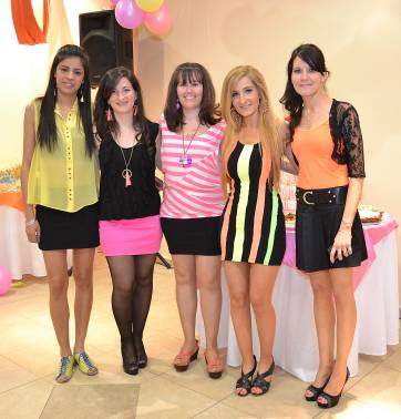 Son cinco amigas, las cinco solteras y sin novios; si bien algunas lo tienen no quisieron "quemarse". Cumplieron treinta años y se les ocurrió celebrarlos juntas, con familia y amigos. Organizaron el encuentro en el salón que posee el Centro Profesional de Ciencias Económicas y eligieron una temática flúor, ropa informal y sorpresas. Para la cena sirvieron perniles con salsas surtidas y una impresionante mesa dulce realizada por ellas y sus madres. ¿Quiénes son?: las mellizas Karina Edith y Laura Anahí, hijas del periodista Juan Sánchez y esposa, Stella Marys Carabante; estudiantes en la Católica. Belén, contadora pública e hija de María Teresa Rodríguez y esposa, Daniel Grasset. Gabriela, estudiante de Abogacía en la Nacional e hija de Mary Suárez y esposo, Jorge Segura. Por último, Marta, kinesióloga graduada en Córdoba, hija de Marta Yúnez y Alfredo Pringles. La algarabía fue grande y el entusiasmo acorde, culminando recién con la salida del sol.