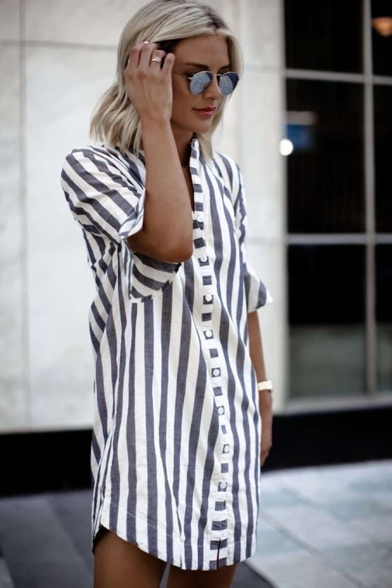 Una camisa larga, cruzado o túnica es una prenda básica, cómoda y funcional. Puede ser un vestido de lino o de algodón. Lo puedes usar para el día con unas ojotas o sandalias planas. Como outfit de noche con tacones y un cinto marcando la cintura.