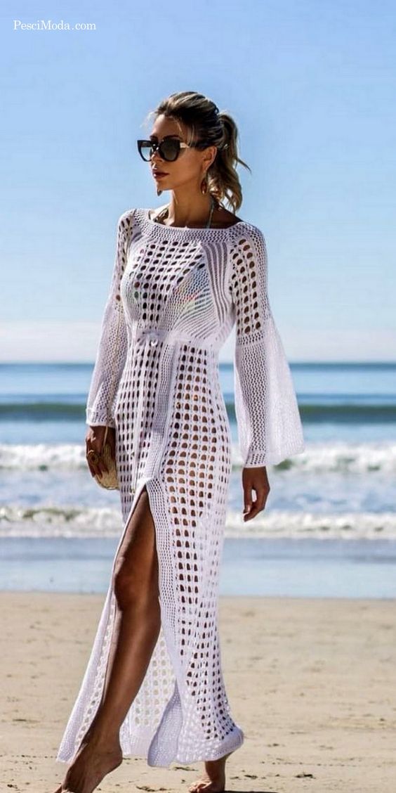Su calado y textura es tan especial en este tipo tejido que se impone en las playas. Perfecto acompañante de atardeceres, fresco, pese a su peso y grosor. Con ojotas o sandalia de cuero, planas o con un tacón asumible, tendrás look para rato.