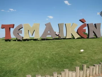 La palabra temaikèn deriva de los vocablos tehuelches,"tem" tierra y "aikèn" vida, por eso bajo su nombre se escribe "tierra de vida".