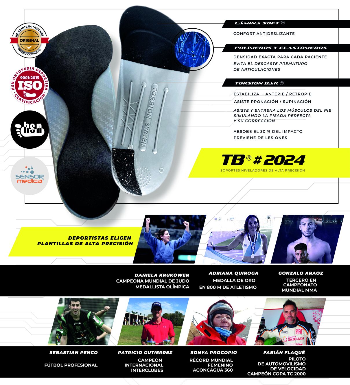 "Fisiológicamente el cuerpo tiene receptores posturales de los cuales el cerebro se alimenta para formar el esquema corporal y también para regular las tensiones musculares y los equilibrios articulares. En el pie están los receptores posturales más importantes, estos se pueden estimular para que el cerebro haga las correcciones correspondientes. Cuál es el problema con las plantillas comunes, el material, que es de goma eva, corcho, goma común, caucho, etc. se produce un estímulo en el pie que no es medido es solo calculado a ojo y confeccionado a mano a diferencia de un soporte correctivo de alta precisión como el que te mostramos hoy. La densidad del material para lograr hacer estímulo en los receptores se fabrica con un material que es un inyectado de polímeros y elastómeros que tienen una densidad acorde al peso y a la dinámica del paciente. Esto es importante porque estás hiper estimulando los reflejos y produce la llamada ceguera propioceptiva, esto está en libros, no es algo nuevo, sólo que en Argentina, no se tiene en cuenta y para el resto del mundo sí. La ceguera propioceptiva es producida por esto y también por la dependencia del arco duro que se le pone a la plantilla común. Este arco no está medido en la flexibilidad, teniendo en cuenta el peso del paciente y la dinámica. Al tener ese arco rígido sin estar medido exacto para cada paciente, afecta a la amortiguación del pie y hace que haya mayor desgaste articular y una suplencia de la musculatura que tendría que hacer el soporte. Entonces cuando uno saca la plantilla común con arco duro se produjo una dependencia en el pie y ya al no tenerla, el músculo no hizo fuerza durante mucho tiempo, no hay corrección, el pie vuelve a caer. El arco rígido sirve sólo para casos puntuales. Sin plantillas no hay corrección. Esto es la diferencia con las plantillas inteligentes, tienen un arco flexible, también hecho por inyectados de polímeros y elastómeros por ello tiene muchos beneficios en todo sentido. Estos soportes están patentados por ello no lo tienen las ortopedias.