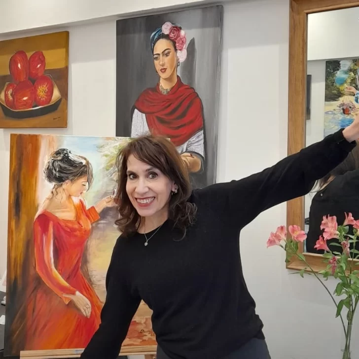 Me resulta placentero conectarme con personas que disfrutan el arte, con los talleres para adultos comencé en el 2018 antes de la pandemia, a tener mi espacio propio, un atelier, en el shopping Del Bono, donde al principio iban personas más allegadas a mí y luego se fueron incorporando otras personas. Hoy el atelier lo trasladé al lado de mi estudio jurídico. El nombre del atelier es "Aladdina Arte", en realidad no tiene una explicación lógica la selección del nombre, sino me gustó la idea de transmitir que a través de algo mágico vos podés llegar hasta donde quieras, no hay un límite, el desafío es con vos misma. Son grupos muy lindos y de crecimiento, respeto mucho el tiempo de cada persona ya que la mayoría son profesionales y por lo tanto tienen otras actividades. Pero me dedico a enseñar a adolescentes y adultos. Van adultos jóvenes y mayores, tengo una alumna de 83 años que está a la par nuestra y ya lleva 15 cuadros. Generalmente nos juntamos los fines de semana y los viernes. Trabajo con pocas personas por grupo, por eso no solo brindo la parte técnica sino lo que se conoce como Arte terapia. Esto te permite sacar de una manera distinta a través de colores, técnicas, la forma de los trazos, fluir todo lo que tenés en el inconsciente, sacarlo al consciente, es un trabajo interno de cada uno. Nadie interviene, ni yo soy nadie para interpretar. Trato de jugar mucho con las emociones, hay talleres de expresión corporal, de expresión teatral, dramatización, todo esto permite sacar jugando algunas cosas que nos hacen sentir más livianos".