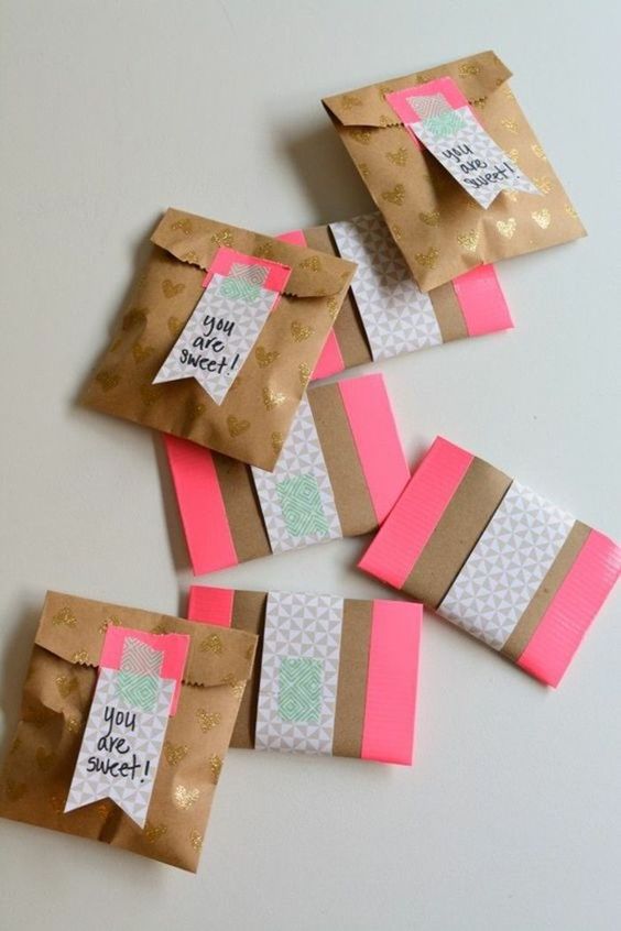 Mil mensajes: Un papel madera decorado con corazones es el ideal para armar muchos sobrecitos con algo interesante en su interior. Cintas y frases son la terminación exterior.