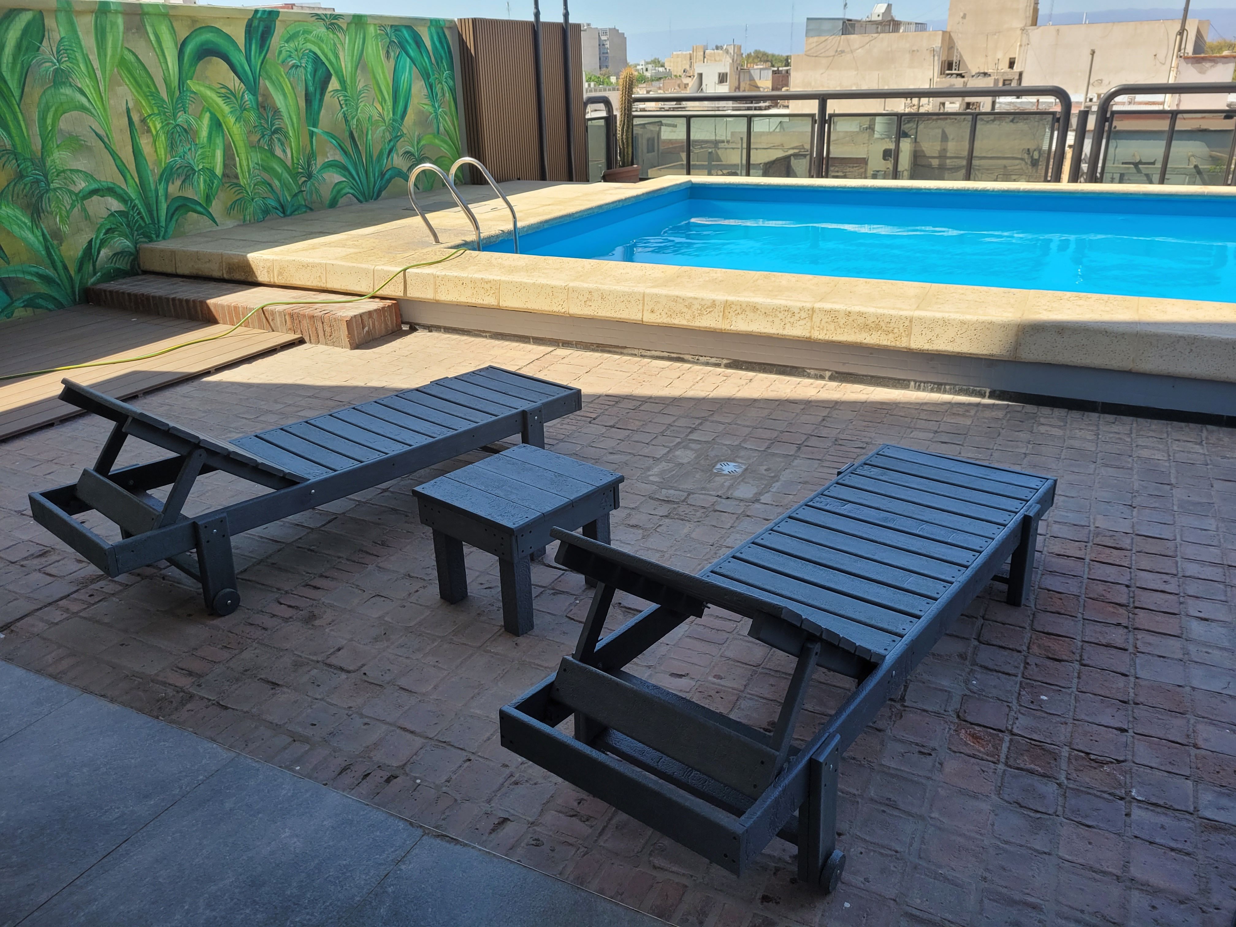 Además de la fábrica está ubicada en el departamento de Rawson y en el mismo lugar implementamos la carpintería y una empresa de servicios. Allí realizamos todo lo que sea muebles de exterior, muebles de diseño, pisos, mesones, reposeras, estructuras para techos, etc. y contamos con el equipo de instalación de obra.