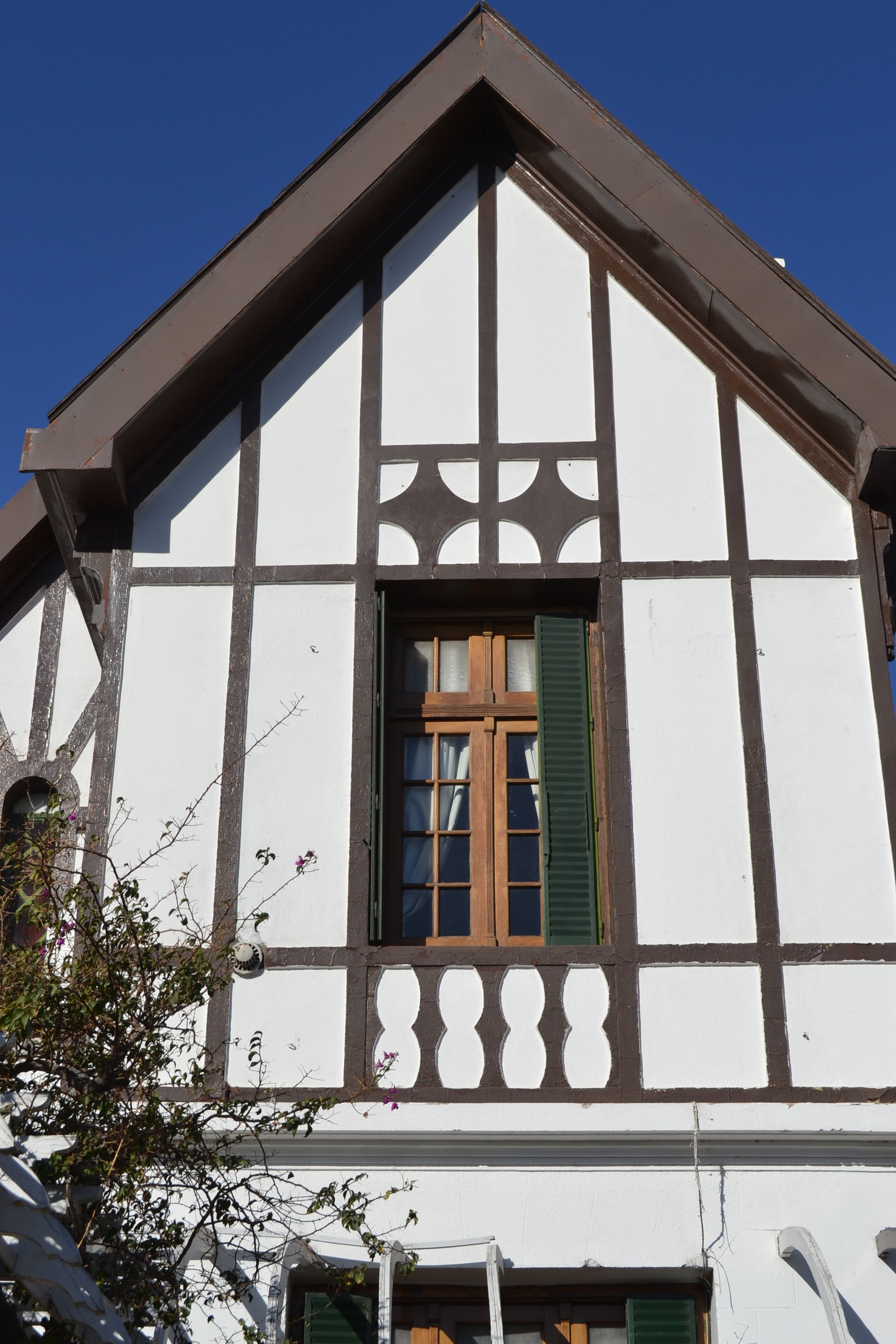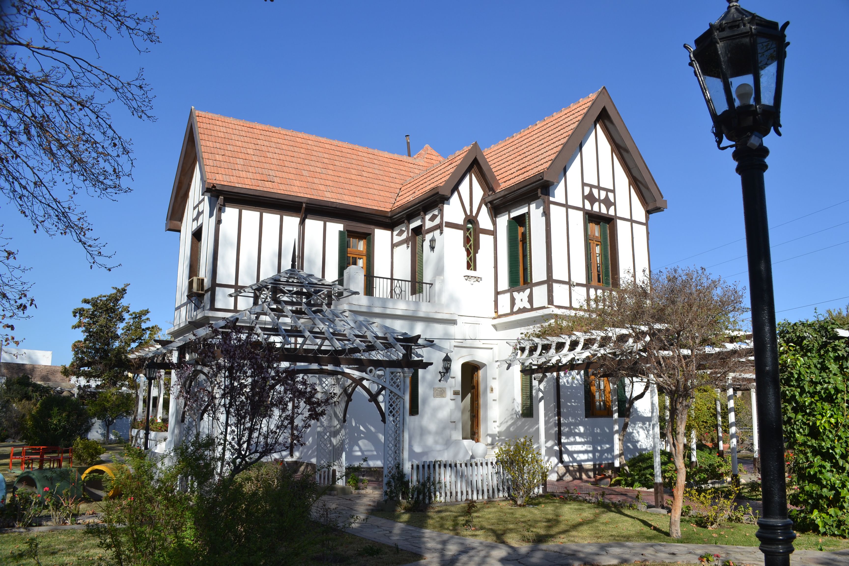 "Salí a recorrer la ciudad, me propuse develar historias que ella me quiera mostrar. Paseando por la zona de Trinidad e ingresando a la ciudad por calle General Acha al sur; al llegar a Avda. de Circunvalación, me apodera la admiración, una obra arquitectónica solemne, cuenta el Arq. Jorge Cocinero Raed. Una gran casona blanca resplandeciente de dos pisos, con sus columnas y vigas de madera oscuras y a la vista, sus tejados muy empinados, dejan traslucir la majestuosidad imperante de una obra arquitectónica en la zona. Se trata del Chalet de la Familia "González Rodríguez’. Sus cualidades, propias de un período, trata de mostrar la riqueza formal de un estilo medieval que se genera en Inglaterra. El chalet está impregnado de "estilo Tudor’, cuyas raíces están en la Dinastía Tudor que gobernó en Inglaterra en el período comprendido entre 1485 y 1603. El modelo de casona, era muy usado en las aldeas rurales, por los grupos sociales más adinerados de ese período.