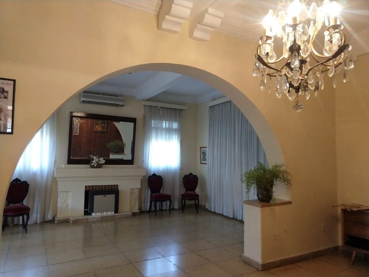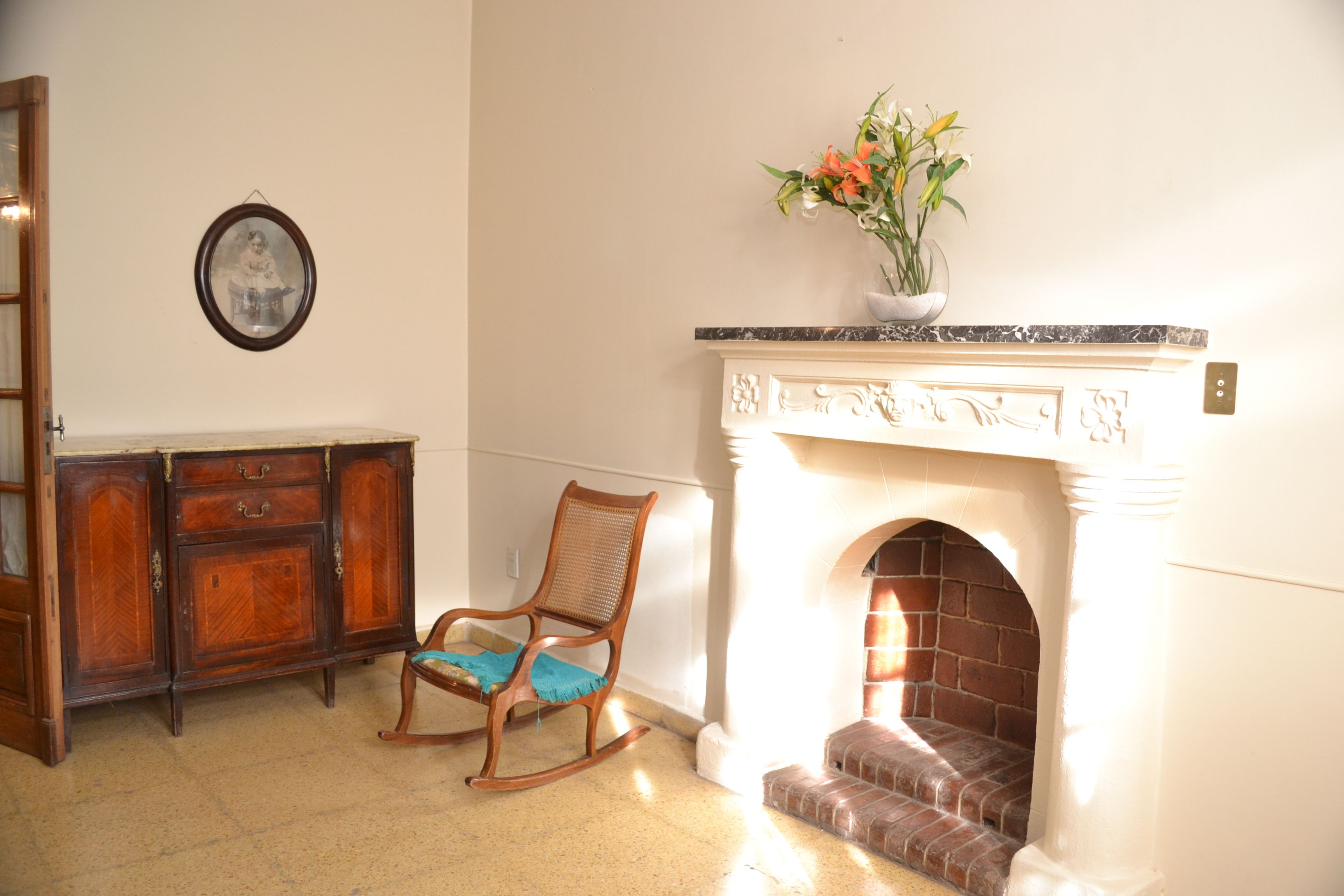 Mabel, una de los cinco hijos que tuvo el matrimonio, nos recibe en el chalet invitándonos a pasar, sin antes dejar de admirar los jardines que rodean el hogar. "Ella cuenta, que su padre al momento de comprar el chalet, vio pasar a la Virgen del Rosario en procesión, por el frente de la casa y al ser muy creyente, lo tomó como una señal para realizar la compra en forma inmediata’. La estructura había sufrido un desplazamiento de 3cm. en uno de los laterales del chalet. Luego de su compra se procedió a consolidar el edificio para otorgarle la seguridad necesaria a la familia.