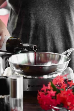 Cuando se cocina el vino sin carnes, se reduce, pero no pierde su astringencia y su color se mantiene.