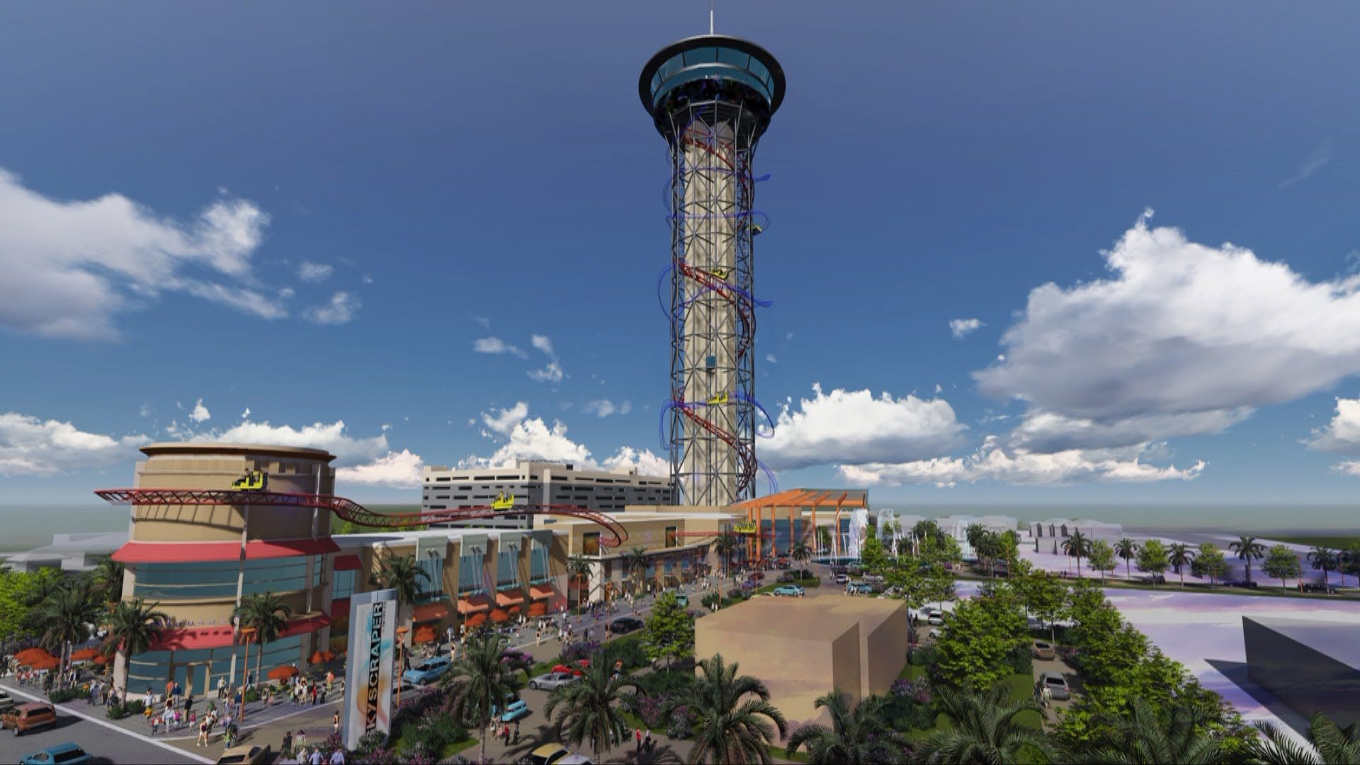 El Skyplex será hogar de restaurantes, tiendas y en el centro habrá una enorme torre con un área de observación. Los diseñadores aseveran que la torre será la estructura más alta en la Florida Central y los visitantes darán un paseo con una vista panorámica de 55 pisos abordo de un elevador de vidrio.