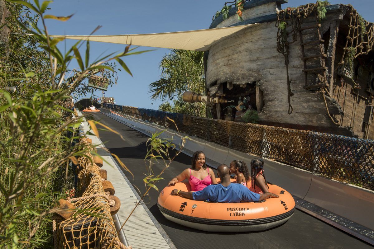 La nueva atracción, ‘Miss Fortune Falls’ y está ubicada cerca de la actual Crush ‘n’ Gusher en Disney Typhoon Lagoon. El paseo en balsa será uno de los paseos más largos dentro de los parques acuáticos de Disney y tiene una duración de 2 minutos.