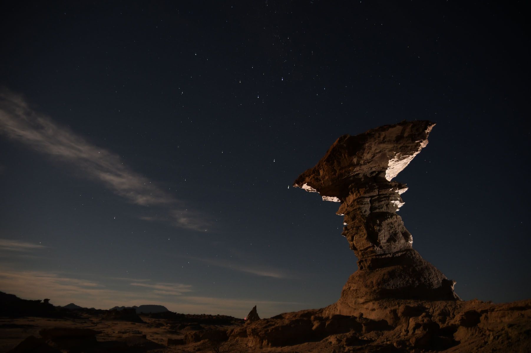 Si Ischigualasto es bello de día, ¿cómo imaginarse una noche allí a plena luz de la luna? Por más lejos que vuele la imaginación, hay que vivirlo. Más aún si la propuesta incluye un paseo vivencial lleno de sorpresas. Así lo plantea Silvia Yafar, propietaria de MoneyTur, quien fue pionera en el desarrollo de esta modalidad turística nocturna, que ofrece alternativas para no olvidar. ¿Cómo explicar una caminata sobre este suelo único acompañado por la luz de la luna llena que se vuelve excelsa en ese paisaje?. Afortunadamente esta experiencia vuelve a escena porque desde hace unos días cuenta con la habilitación oficial correspondiente para realizar este paseo tras la cuarentena. Lógicamente que como toda actividad cuenta con un protocolo sanitario acorde a la realidad de la provincia.