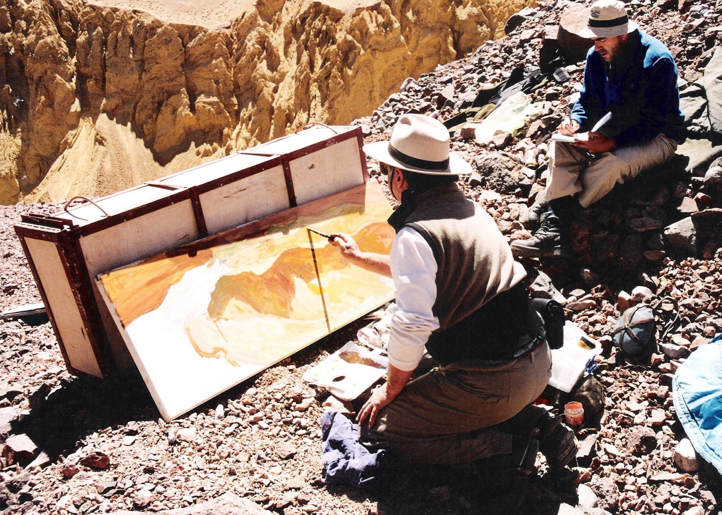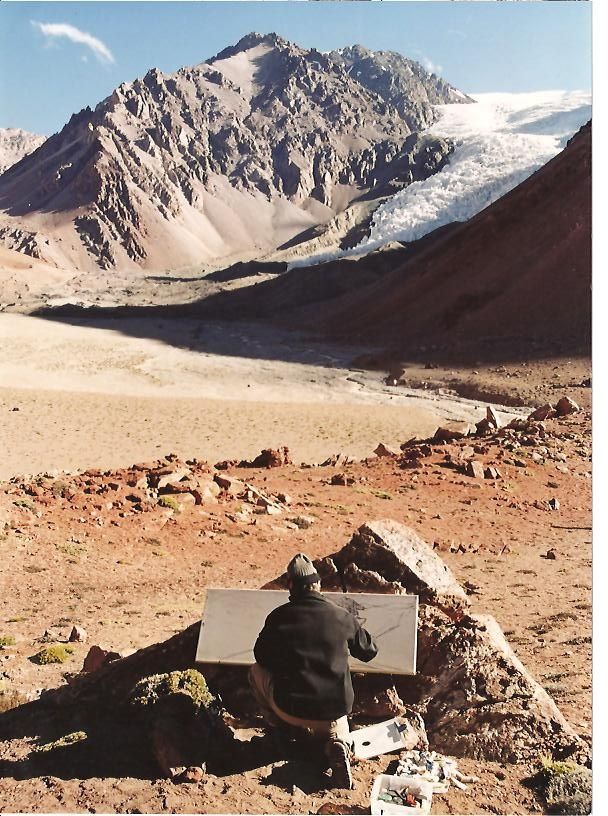 Sumergirse en la cordillera de los Andes es una verdadera hazaña y aún más si ese viaje le imprime algo adicional, la búsqueda de un artista visual. El hecho de pintar allí y subir los materiales en mula, convierte el viaje en un hecho casi épico. Se trata de Carlos Enrique Gómez Centurión, de profesión arquitecto pero también un gran maestro del pincel.