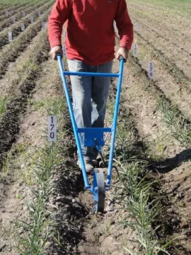 Las pequeñas producciones hortícolas en líneas y bajo riego (en los que tienen como uno de los principales componente del costo los desmalezados manuales que se realizan con zapas o escardillos manuales, utilizando hasta más de 20 jornales/ha. Habitualmente no utilizan herbicidas, o los usan sólo para la trocha central. Existen en el mercado diferentes herramientas de tiro animal o motorizado que no siempre están al alcance del productor. Pequeños talleres regionales han propuesto herramientas económicas y de empuje manual, sin embargo no están muy difundidas. Con el objetivo de disponer de una herramienta liviana, de bajo costo (de construcción y operativo), y de alta eficiencia, se re diseñó una cuchilla desmalezadora de empuje manual que compita con los métodos tradicionales de labranza.