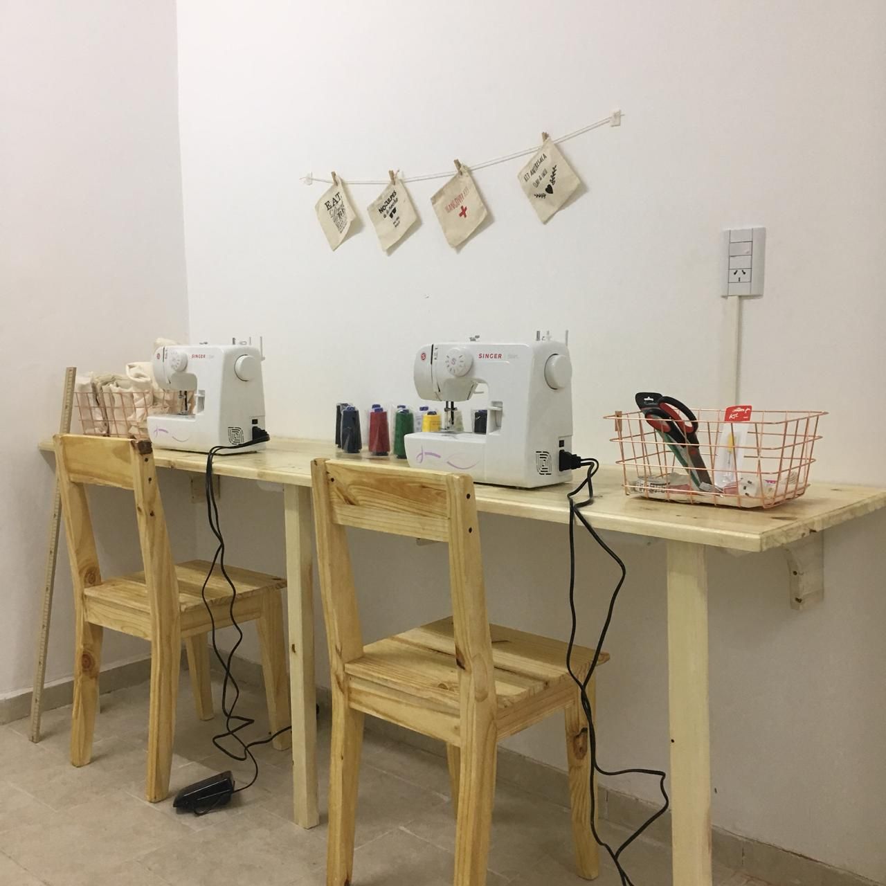 A medida que crecimos empezamos a necesitar un lugar que funcione como depósito y también para realizar las reuniones tanto para clientes como para las mujeres que nuclear. Gracias al impulso que obtuvimos al recibir dos máquinas de regalo del Diario Huarpe y el Programa "El emprendedor cultural" del Ministerio de Turismo y Cultura pudimos hacerlo realidad.