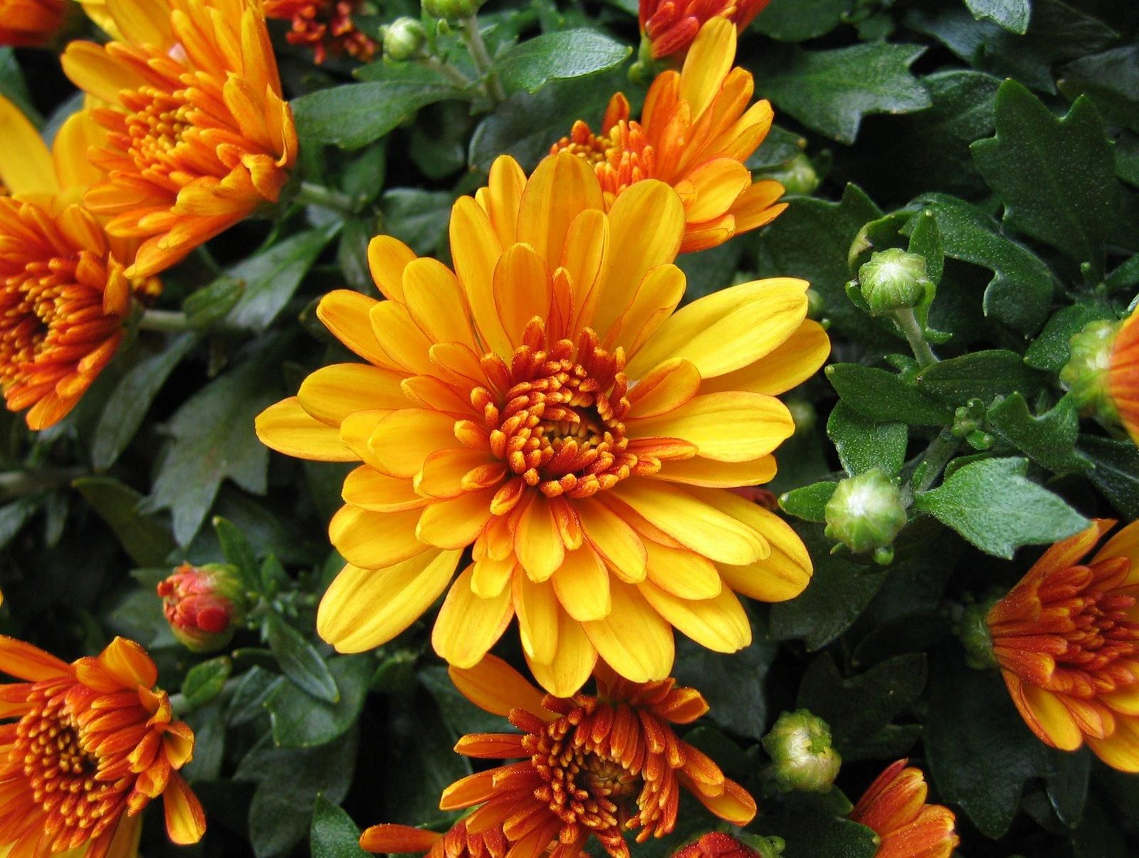 Hortensias, Pensamientos, Crisantemos, Violeta de los Alpes, Hibisco, Prímulas, Caléndulas, Dalias, Alelí, Hiedras, Conejitos, Ericas y Bulbos, por ejemplo: Narcisos, Fresias, Juncos, Marimonias, Jacintos, etc.