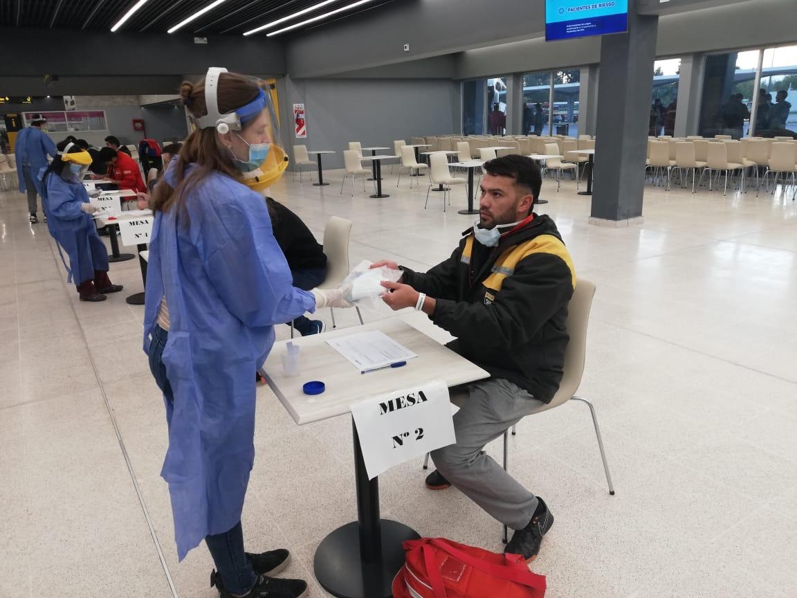El trabajo en un sitio remoto a 4.000 metros sobre el nivel del mar y a 370 kilómetros de la ciudad de San Juan implicó la adopción de medidas muy concretas. La primera y más importante fue el control de salud previo a viajar a la mina que incluye un registro de la temperatura de cada persona, un test de olfato y una declaración jurada de salud. “El trabajador recibe un kit de higiene personal con alcohol en gel, barbijo y guantes de nitrilo. El tramo en bus, de unas 6 horas, se hace utilizando sólo el 50% de los asientos y de acuerdo con las normas provinciales con uso de cubre bocas. A su vez, cabe destacar que en este momento la mina funciona sólo con el personal que tiene residencia en la provincia de San Juan”.