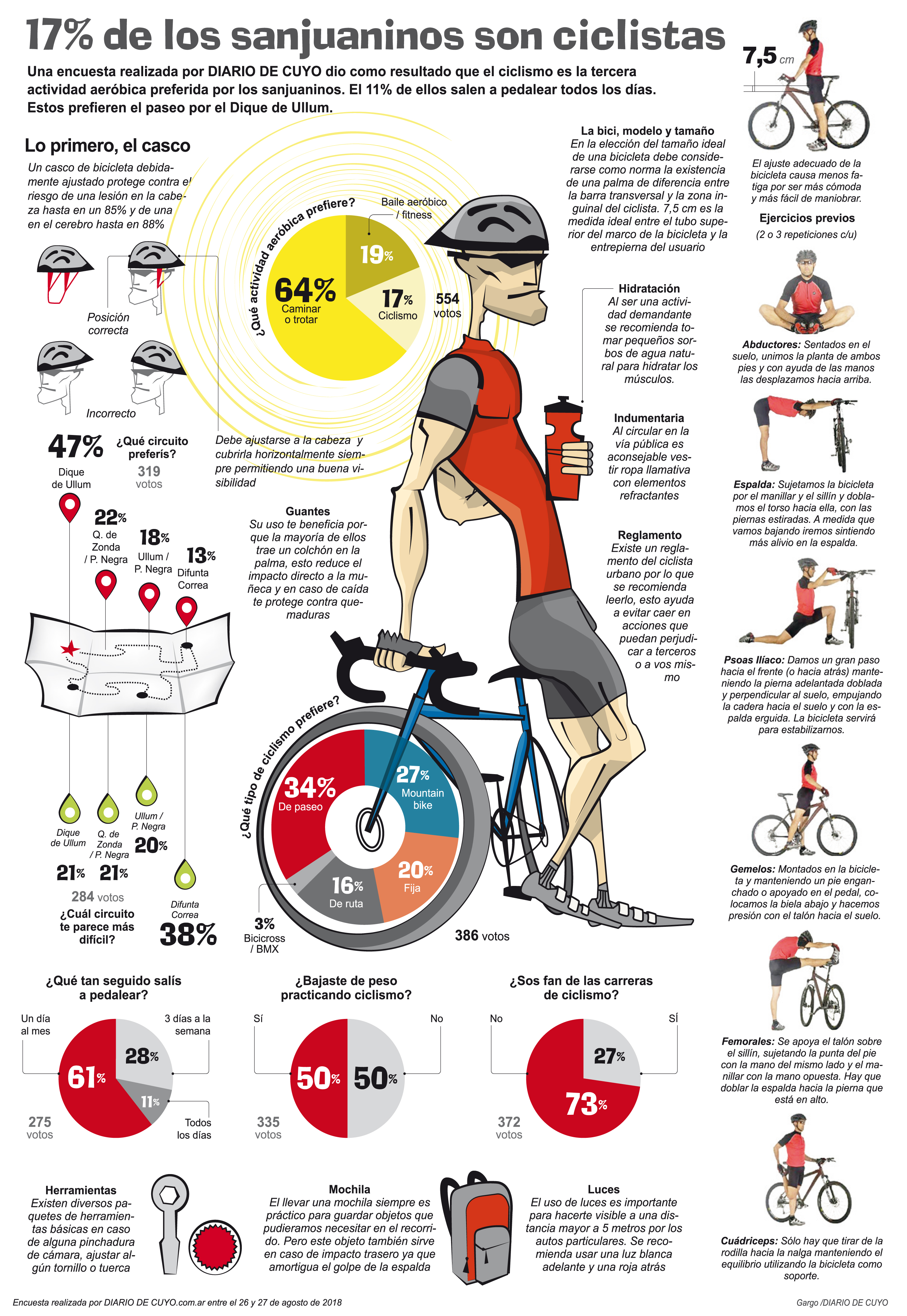 Diario de Cuyo | HOME | Revista OH! | Ciclismo | Deporte Universo ciclista Una encuesta realizada en Diario de Cuyo dio a conocer que el 17% de los sanjuaninos practica el ciclismo. Un informe completo acerca de esta actividad, salud, condiciones, equipo, bici, distintas prácticas, finalidad, circuitos y ventajas. Por Redacción Diario de Cuyo 15/09/2018 · 0:00 Ciclistas en medio de una carrera. Ciclismo Revista Oh! Ver los comentarios ›