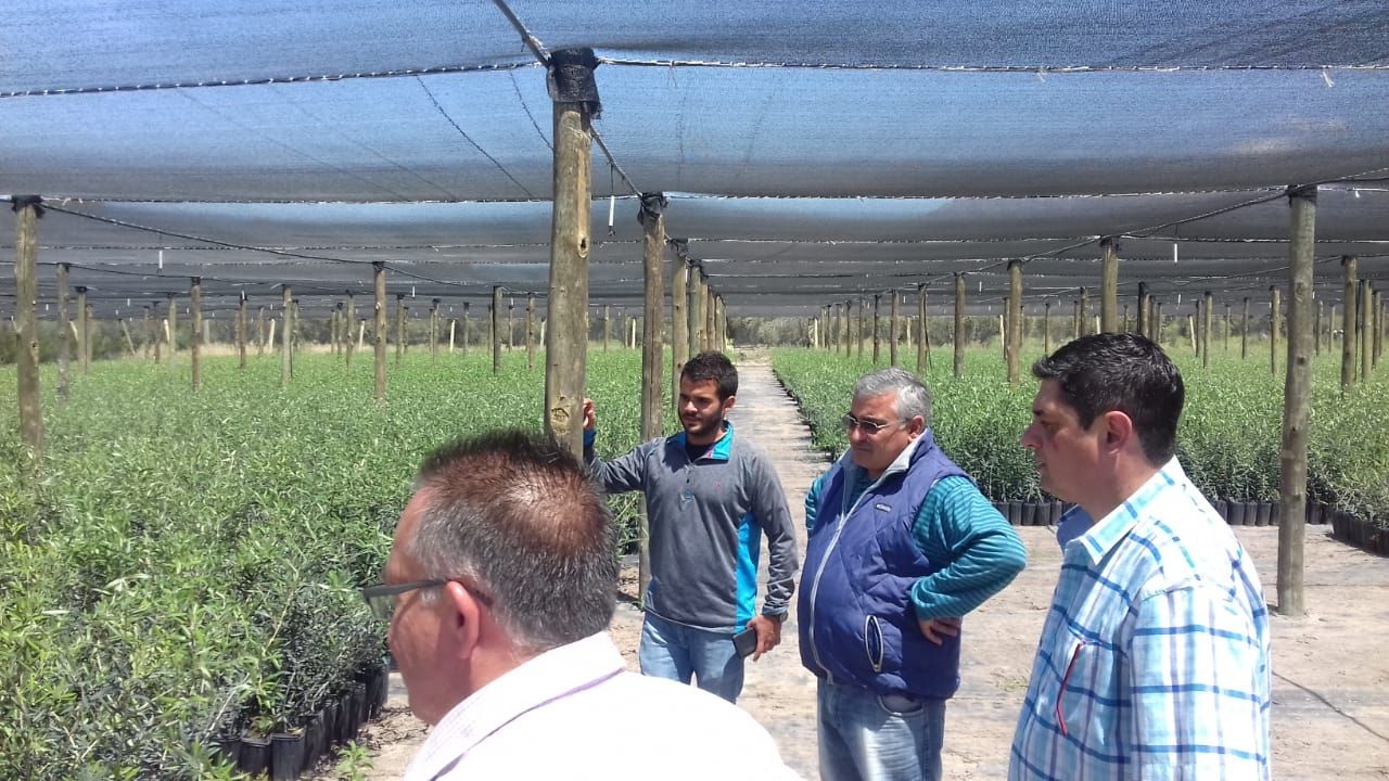 El profesional intercambió ideas con los ingenieros agrónomos y encargados de fincas con montes de olivos, hablando del uso y ventajas de algunos productos químicos de la firma española en la que trabaja, y también recorrió empresas agroindustriales de Ullum y Pocito.