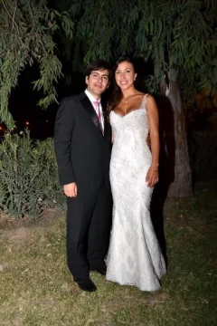 Testigos, Mariela Gallardo y Emiliano Cebrero. Para el civil, María Laura Valverde, Rosana Fernández, Celina y Carlos Cortínez. Celebraron en La Caballeriza, el haras de Jaled, con el catering de María José Echegaray para algo más de doscientos invitados que en el momento del baile, disfrutaron del grupo musical Plan B que lidera Alejandro Segovia.
