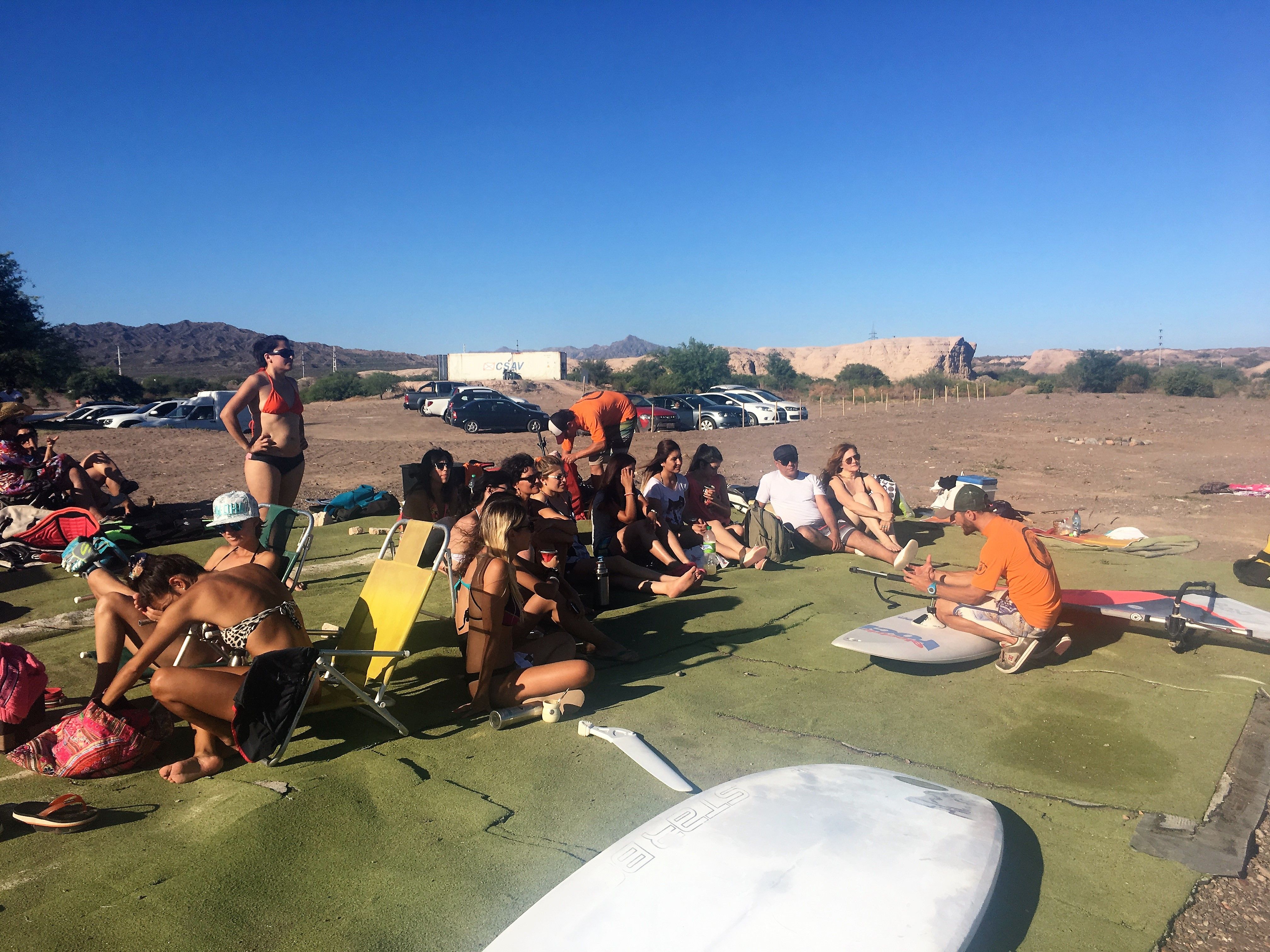 El curso abarca 4 clases de una hora y media, terminando el curso siendo un navegante independiente. Es navegar a vela por los distintos lugares del dique y volver al mismo lugar. El club posee un rental de equipos o bien podes comprar el tuyo propio. Además poseen toda la curva de velas y tablas en cuanto al tamaño, de este modo se provee el equipo adecuado para cada persona. Las clases son de miércoles a domingo de 14 a 20hs., estas se coordinan para cuando llega el alumno tome su clase y no tenga que esperar. Hay 3 profes todas las tardes, con un promedio de 5 personas por día aprendiendo el winsurf siendo las clases personalizadas. Este grupo de instructores están preparados profesionalmente ya que se entiende la responsabilidad que es meter gente al agua y que no todos tienen las mismas condiciones en el agua; por lo tanto siguen al alumno en todo momento.Todas estas actividades son seguras no solo por los equipos sino por contar con un elemento de flotación como es la tabla.