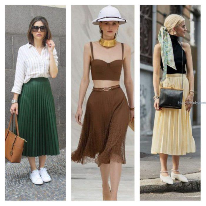 Una de las tendencias que surgieron de pasarelas fue la falda plisada, y aunque hubo una ligera dispersión de mini encarnaciones, todo se trata de la midi plisada. No hay reglas. Estampadas, lisas, coloridas, monocromáticas, combinadas con prendas de punto o combinados con un bralette: siempre y cuando sea plisado.