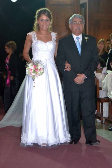 La novia lució un vestido realizado por Gloria Albanesi, con el peinado de Estela Fernández y maquillada por Gema Santiago.