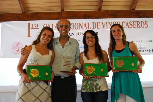 Se realizó en la provincia la Primera Cata Nacional de Vinos Caseros participando vinos de San Juan, Salta, La Rioja, Córdoba y Mendoza. Se evaluaron 64 muestras de 55 elaboradores y se premiaron 13 vinos con medallas de oro. El certamén fue realizado por la Asociación de Elaboradores de Vinos Artesanales y contó con el apoyo de Acción Social de la Nación, la Secretaría de Turismo de san Juan y la Municipalidad de Pocito. El Moscatel Rosado de la "Colección Suero" de Angaco fué el vino con el máximo puntaje. En la foto el elaborador Roberto Suero junto su esposa Nury Godoy y sus hijas Yamila, Belen y Mayra recibiendo el premio.