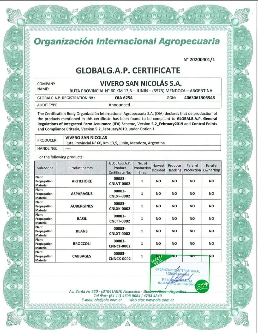 Carlos Freire comentó con orgullo a Suplemento Verde esta semana: "Estamos muy contentos de lograr esta certificación de la Organización Internacional Agropecuaria (OIA). Seguimos optimizando procesos, buscando la máxima calidad final y fundamentalmente escuchando a nuestros principales clientes, los chacareros".