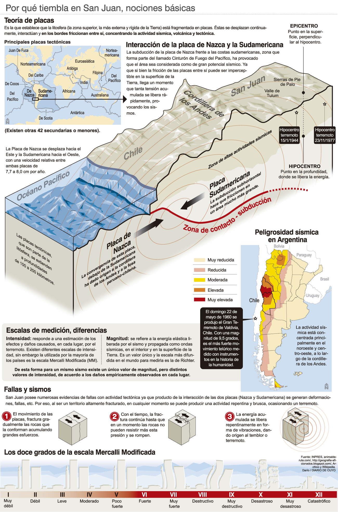El sismo de mayor magnitud en San Juan y en toda la Argentina es el denominado terremoto argentino de 1894. Fue en el Norte de la provincia en el departamento Iglesia y se le asigna una magnitud de 8 grados, pero particularmente creo que está un poco elevada, no debería pasar de siete tres cuartos. El de mayor intensidad fue el terremoto del 44 (N.de Redacción: 9 en escala Mercalli modificada) que destruyó prácticamente toda la ciudad.
