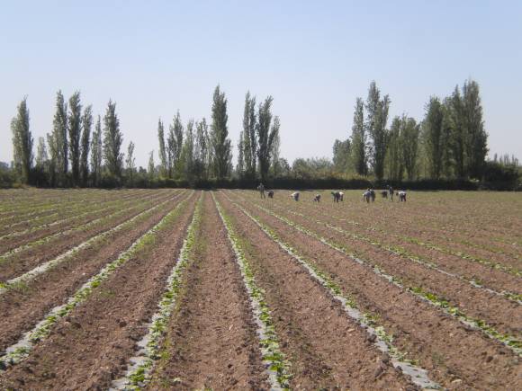 "Vienen bien los zapallos", comentó a Suplemento Verde, "con una entrada en cosecha algo anticipada a lo habitual, quizás una semana, es decir sería en la segunda de diciembre. La primavera está muy rara, sin vientos Zonda gracias a Dios, con sólo unas pocas lluvias y con temperaturas algo livianas, que recién ahora están arrancando normales. En esta finca, nuestro centro de operaciones, desde la semana ponemos 18 hectáreas más con equipos de riego por goteo y ahí estaremos completando las 40 hectáreas, donde además de zapallos estamos haciendo ajos. El estado sanitario está perfecto y el crecimiento normal, con apariciones de malezas en todos lados, lo cuál es lo de todos los años, y en este momento pueden ver cuadrillas de gente eliminándolas a mano".
