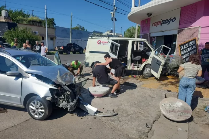 Este sábadoUna Trafic y un auto chocaron en una esquina de Capital y se estrellaron contra un Rapi Pago: seis personas trasladadas al hospital
