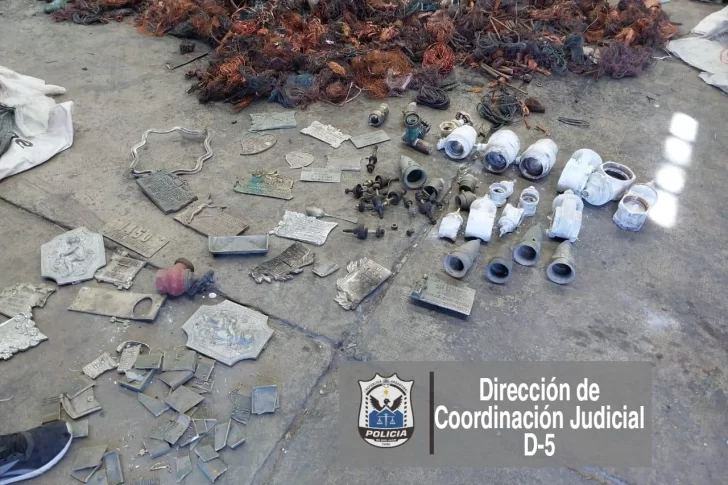 EN CHIMBASEn una recuperadora clausurada que funcionaba igual hallaron cobre de dudosa procedencia y placas de difuntos