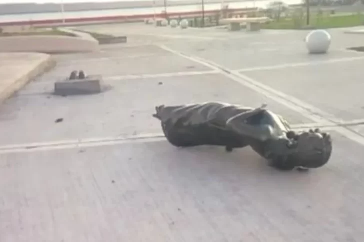 Derribaron y rompieron una estatua de Cristina Kirchner en Río Gallegos