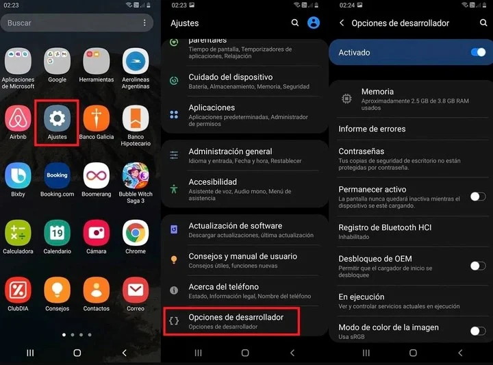 Y si bien son considerados como una medida avanzada, no hay que tener miedo. En Opciones del desarrollador, se incluyen tres ítems que deben permanecer sin tilde: procesos en segundo plano, ventana de escala de animación y representación GPU.