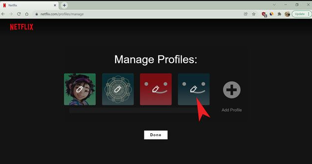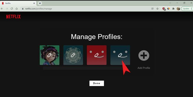Seguidamente, haz clic sobre el icono del lápiz sobre el perfil de Netflix que desea eliminar.