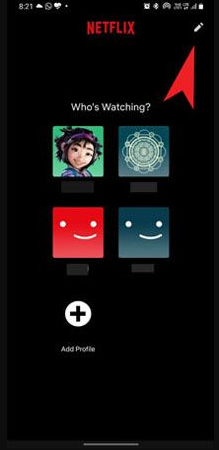 Para eliminar un perfil de Netflix desde su móvil Android o iOS comienza ingresando en la app e inicia sesión. Una vez dentro, pincha sobre el icono del lápiz situado en la esquina superior derecha de la pantalla.
