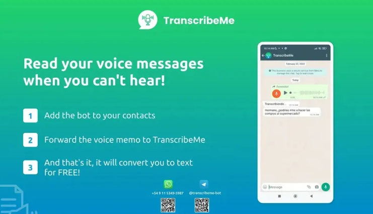 Para acceder, primero se debe agendar el número +54 9 11 5349-5987 a los contactos del teléfono y reenviarle el audio a transcribir.