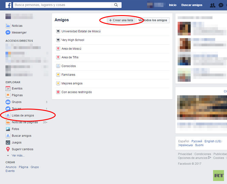 Además, se puede crear una lista personalizada o una lista inteligente de amigos. Para ello haga clic en ‘Amigos’, en el lado izquierdo de la sección de noticias, otro clic en el nombre de la lista que desee editar y después seleccione a sus amigos en la esquina superior izquierda.